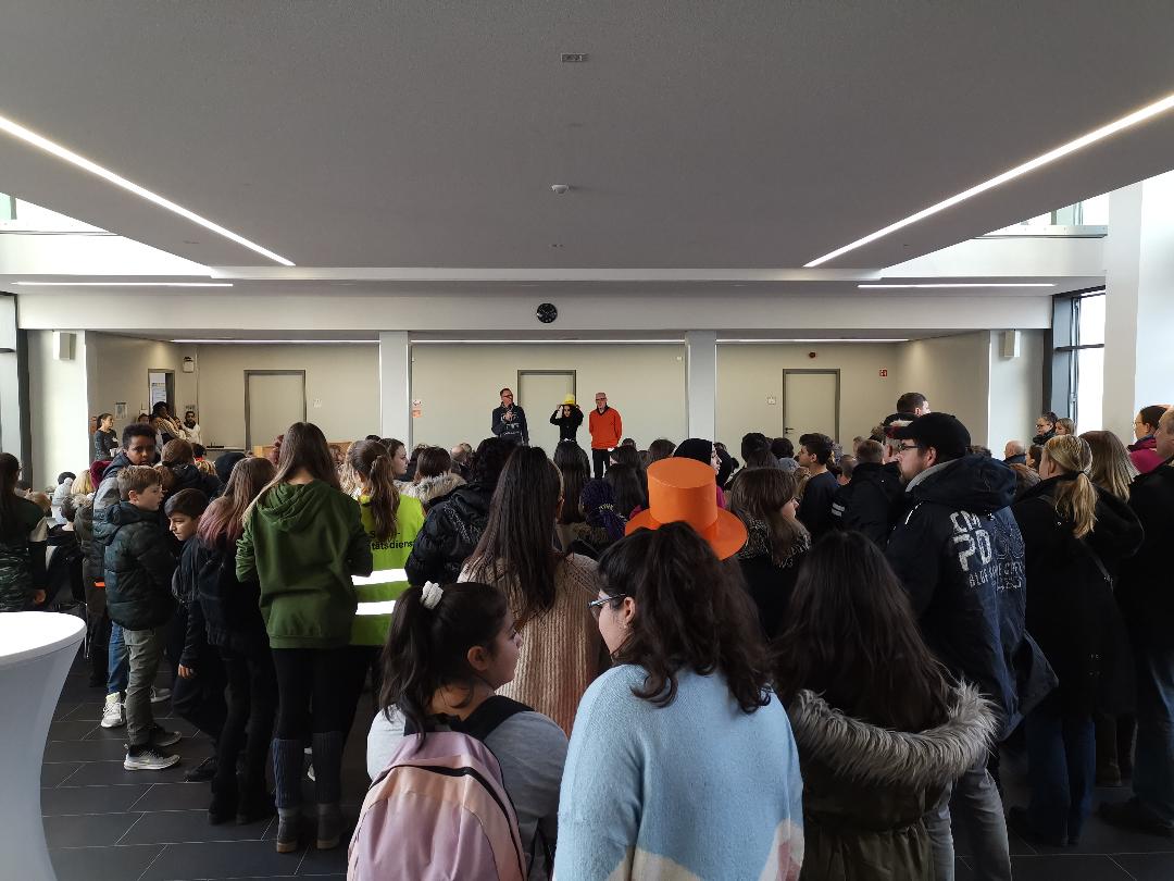 Am Samstag, den 30. November 2019 folgten viele Bochumer Grundschülerinnen, Grundschüler und deren Eltern unserer Einladung zum Tag der offenen Tür. Bei der Begrüßung in der Aula wurden sie mit Musik und Gesang herzlich empfangen.